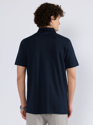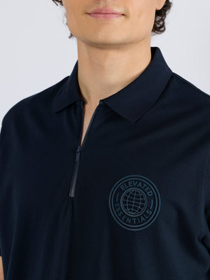 Yelitude - Solid Zipper Polo T-shirt - Navy Blue