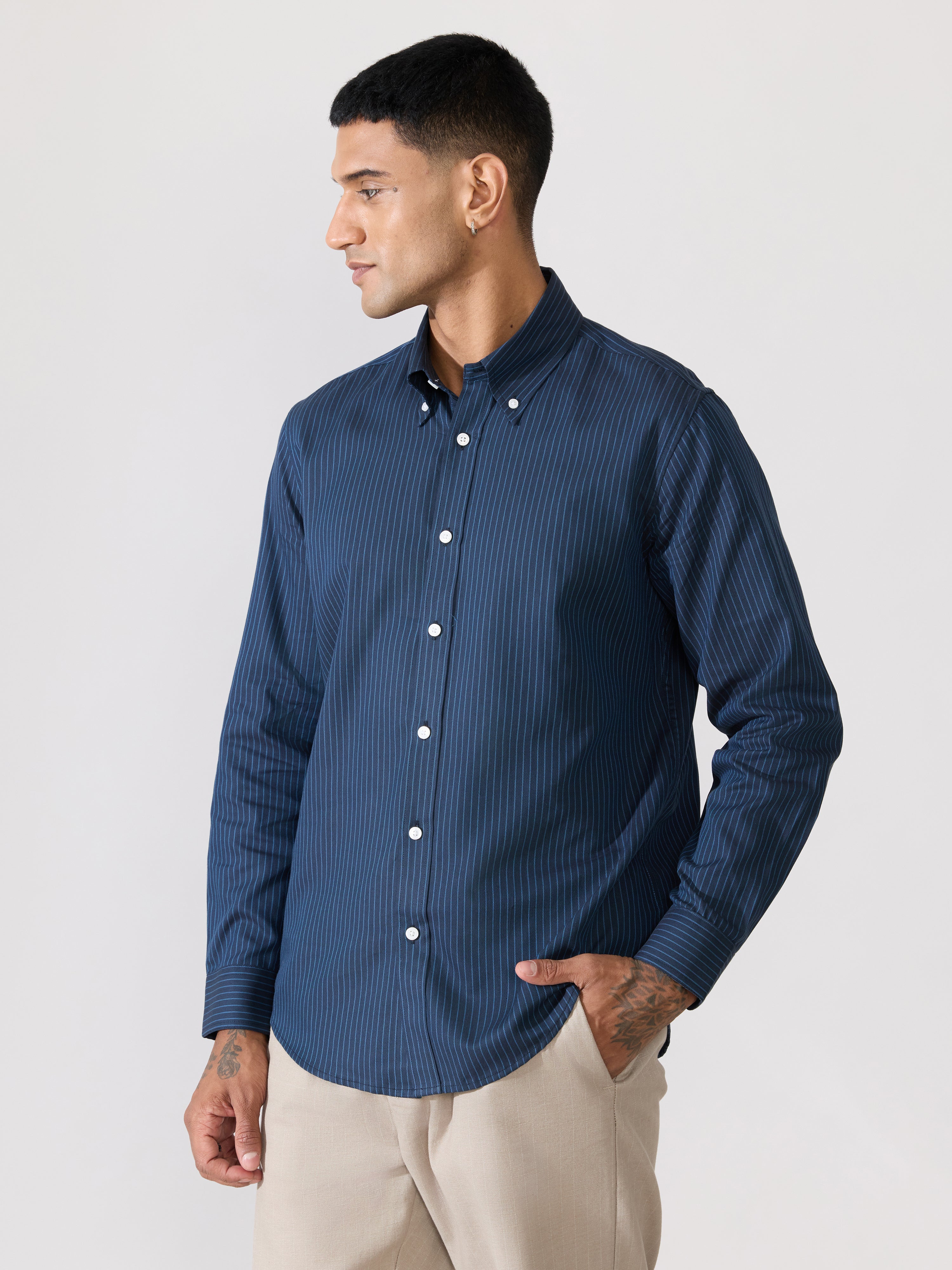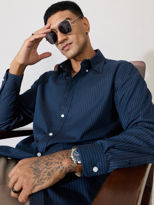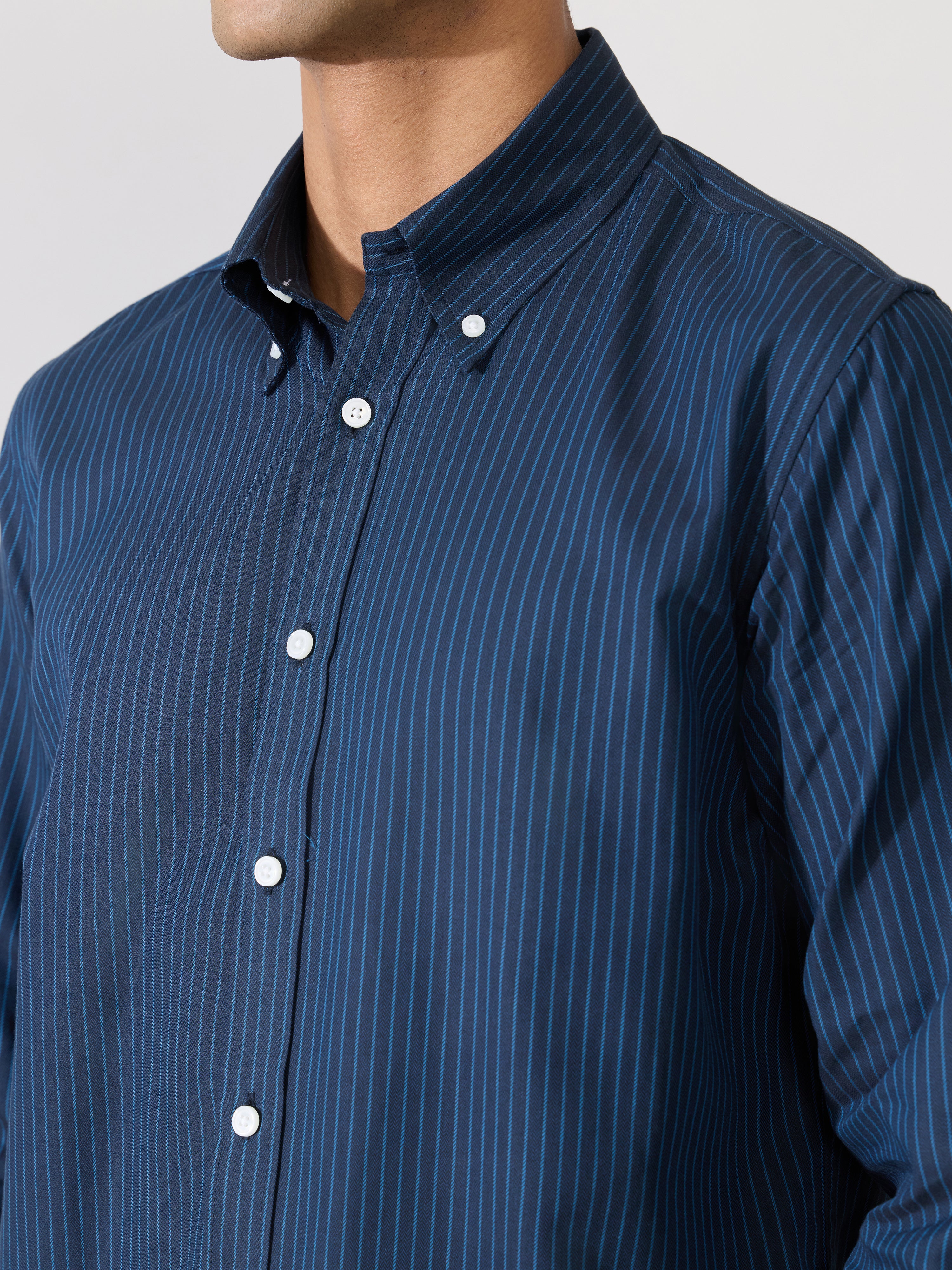 Erzela - Smart Fit Striped Shirt - Navy Blue