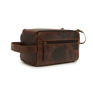 Godfrey - Leather Retro Dual Zipper Toiletry Bag - Brown