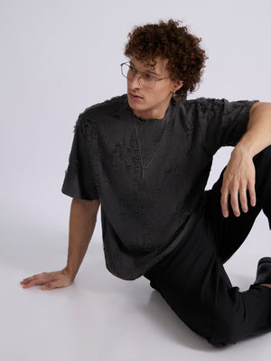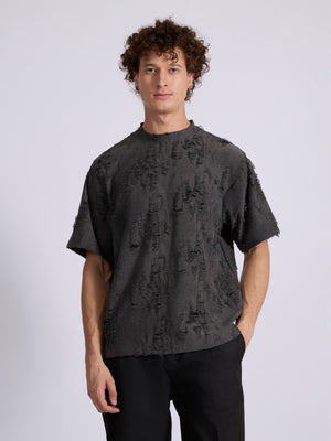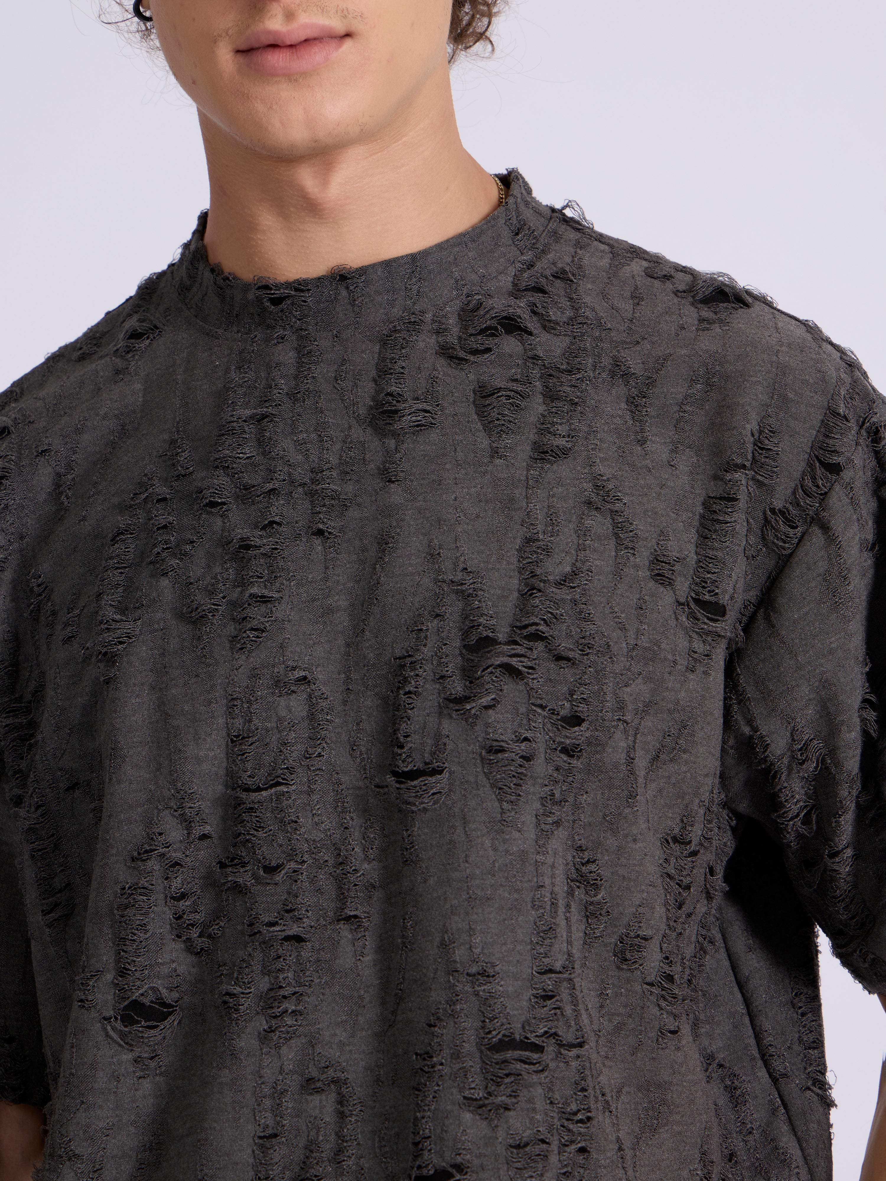 Elevate your streetwear game with this Wexley - Distressed loose fit t-shirt, designed for both comfort and style. Crafted from a premium blend of polyester, cotton and spandex, it offers a lightweight yet structured feel with just the right amount of stretch. The fabric features an all-over distressed finish, giving it a raw, edgy aesthetic that stands out from the crowd.With its boxy silhouette, dropped shoulders, and unfinished edges, this tee is perfect for layering or wearing solo.