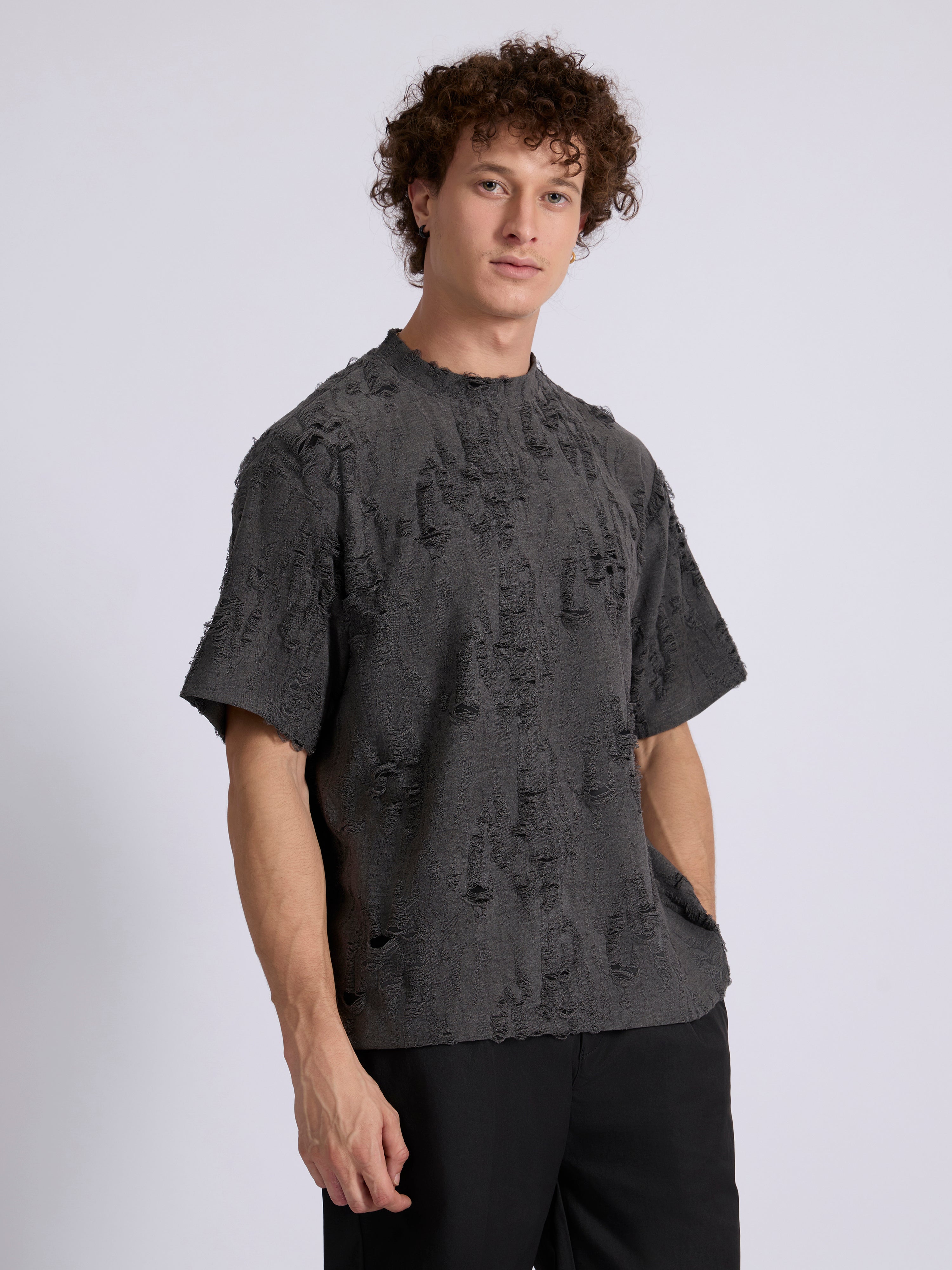 Structure: half sleeve distressed T-shirt