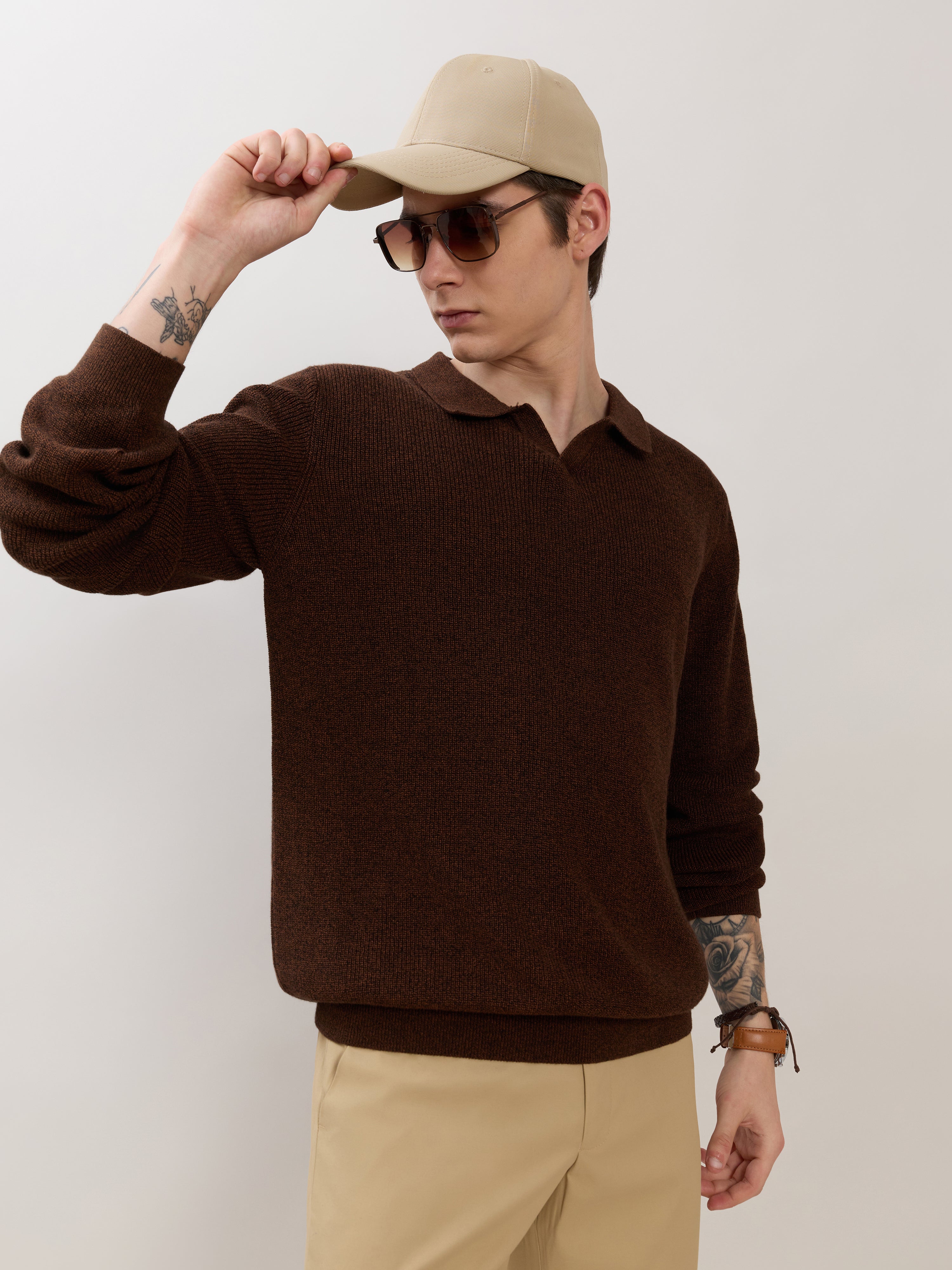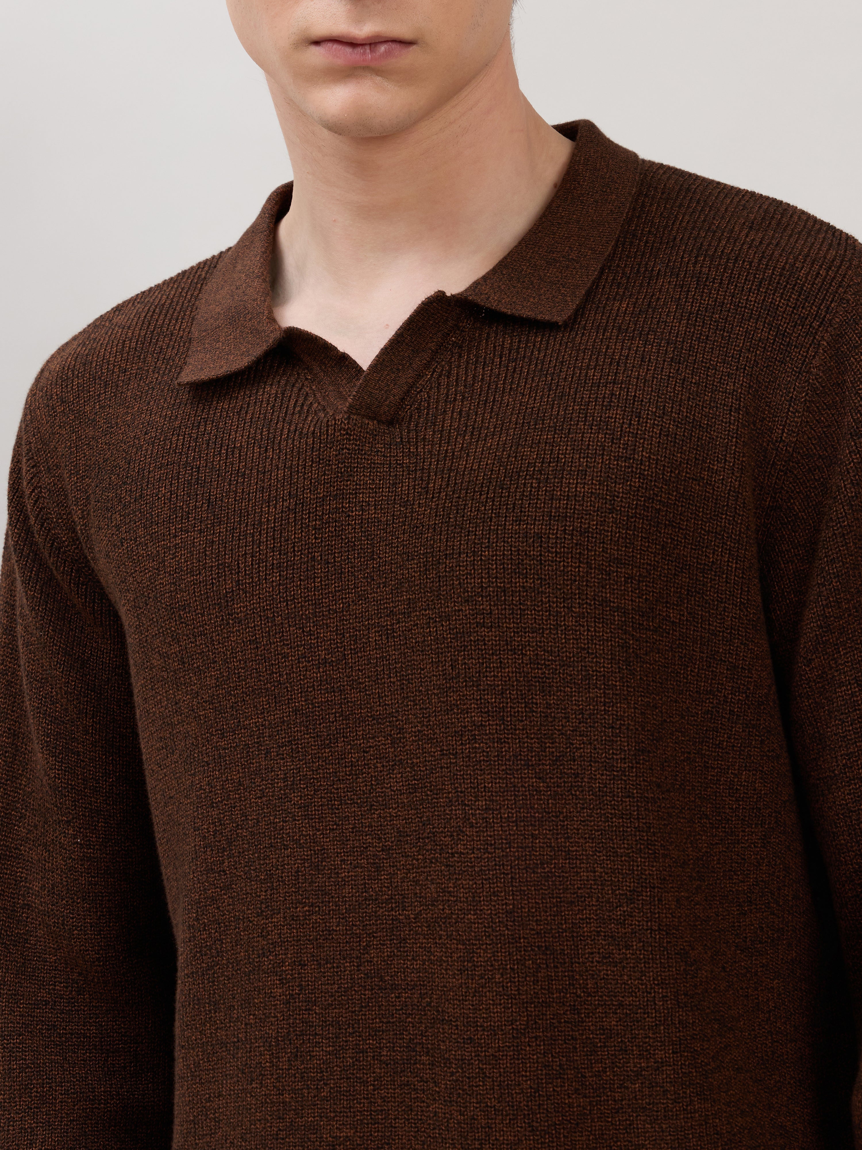 Xosio-1 - Regular Knitted Polo Sweater - Brown Black Grindle