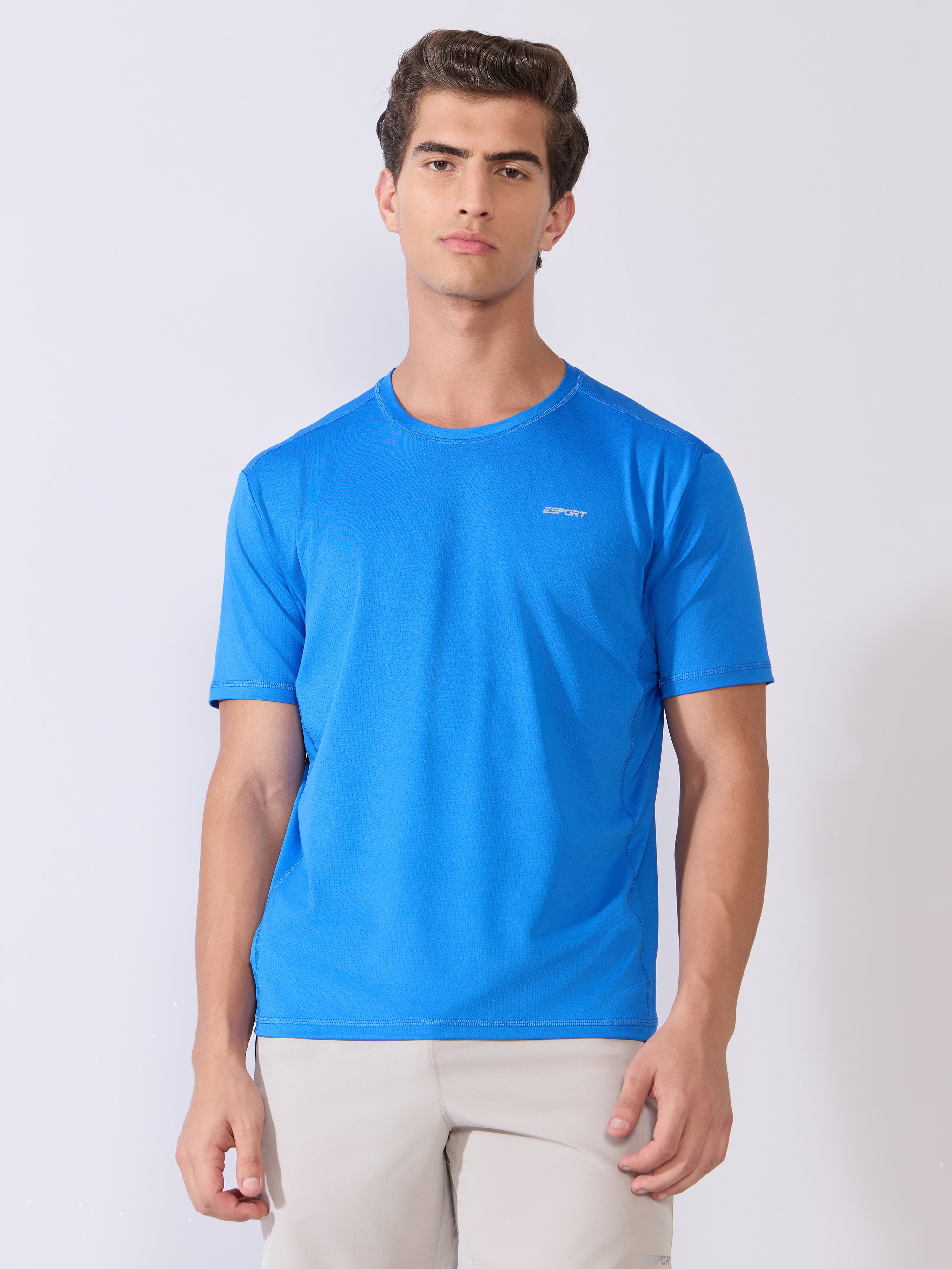 Elevate your active routine with Ash Sport Fit T-Shirt, designed for performance, comfort, and all-day movement. Its stretchable fabric and clean Blue shade make it perfect for workouts or everyday wear. Made from a high-stretch polyester–lycra blend, this tee provides excellent breathability, quick-dry comfort, and effortless flexibility for workouts, travel, or casual wear. Its sport fit silhouette enhances your physique without feeling tight, while the smooth, lightweight fabric ensures all-day ease.