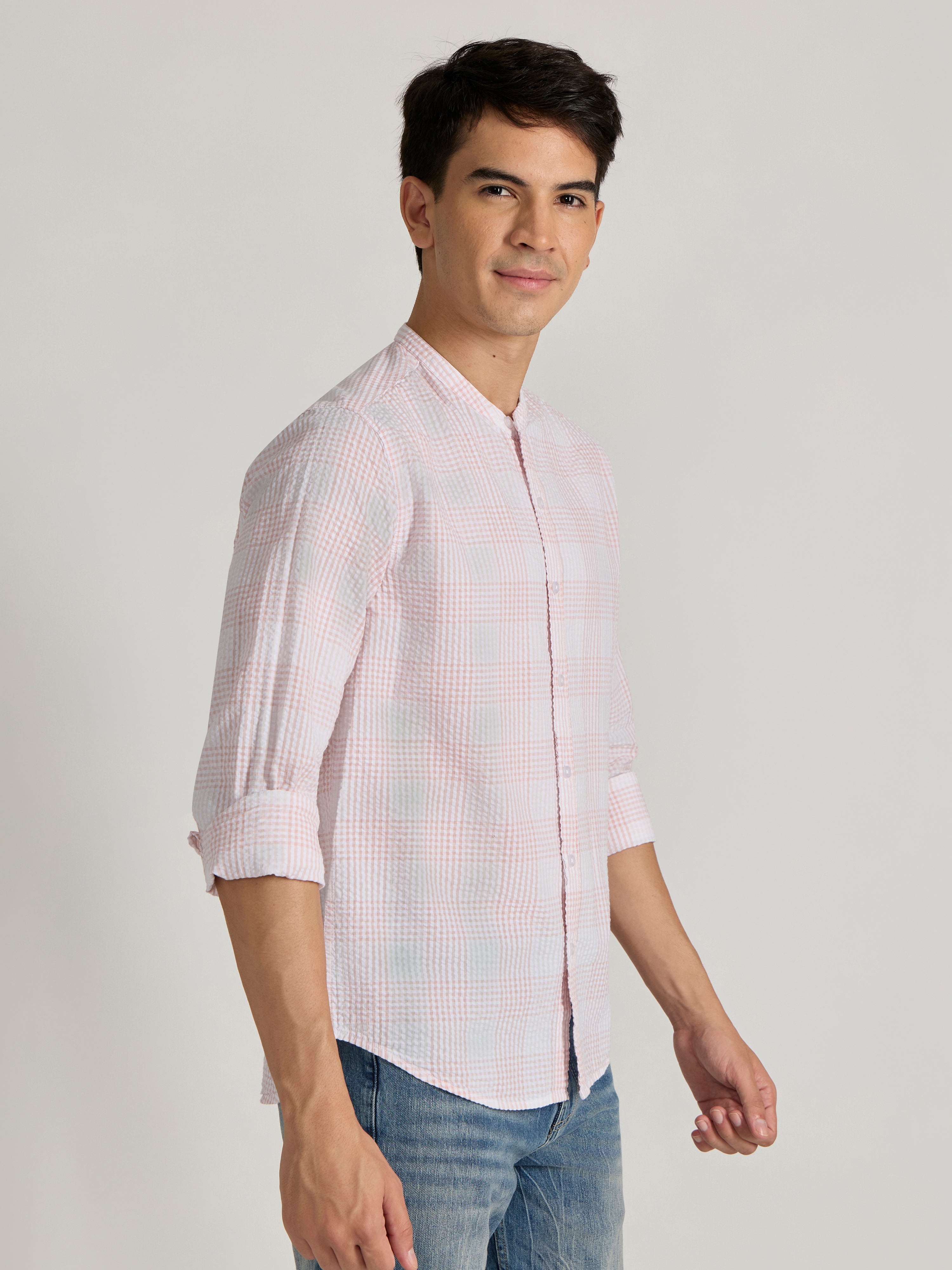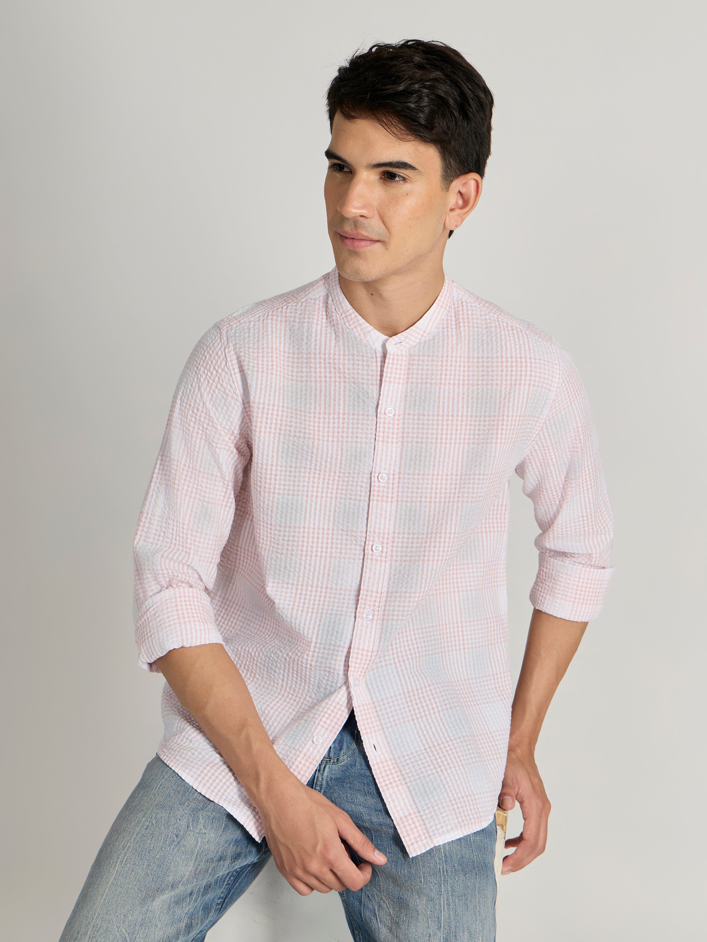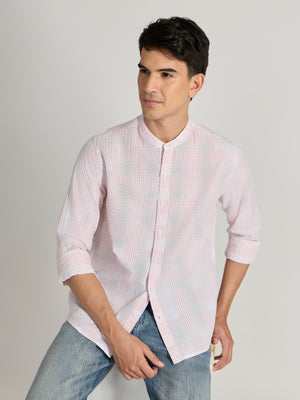 Hadrian - Band Collar Checks Shirt - Light Pink