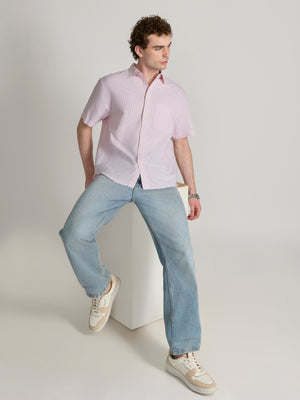 Elevate your casual style with the Oran Striped Shirt. Crafted from premium cotton, this shirt ensures all-day comfort and breathability. Designed with a classic fit and half sleeves, it offers a relaxed yet refined look perfect for warm days. The subtle stripes add a touch of sophistication, making it versatile for both casual outings and semi-formal occasions. Ideal for effortless sophistication, this shirt pairs seamlessly with jeans or chinos for a confident.