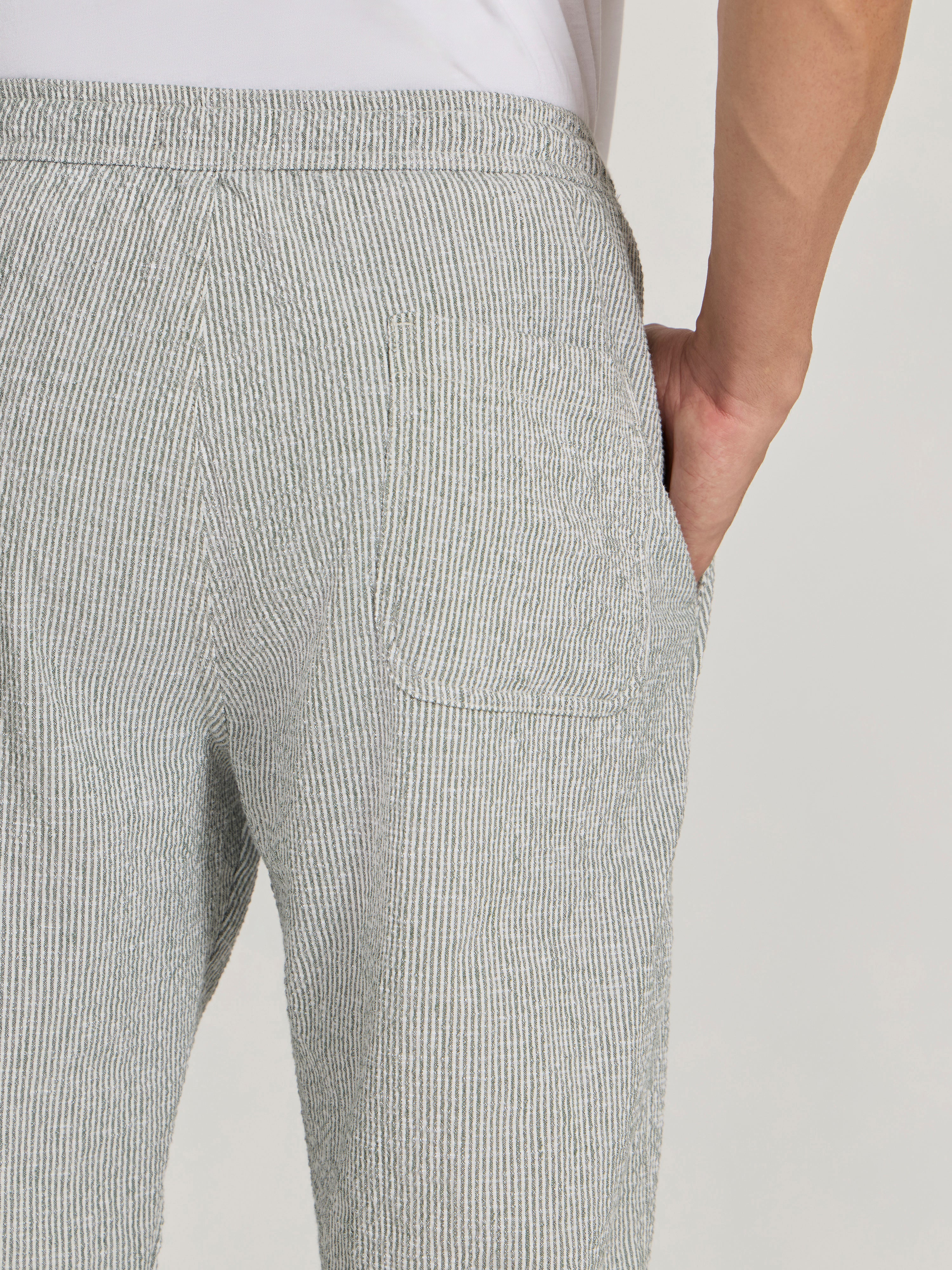 Corbin - Striped Seersucker Trousers - Green
