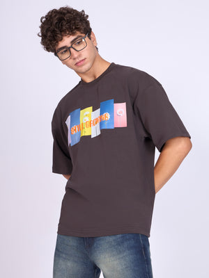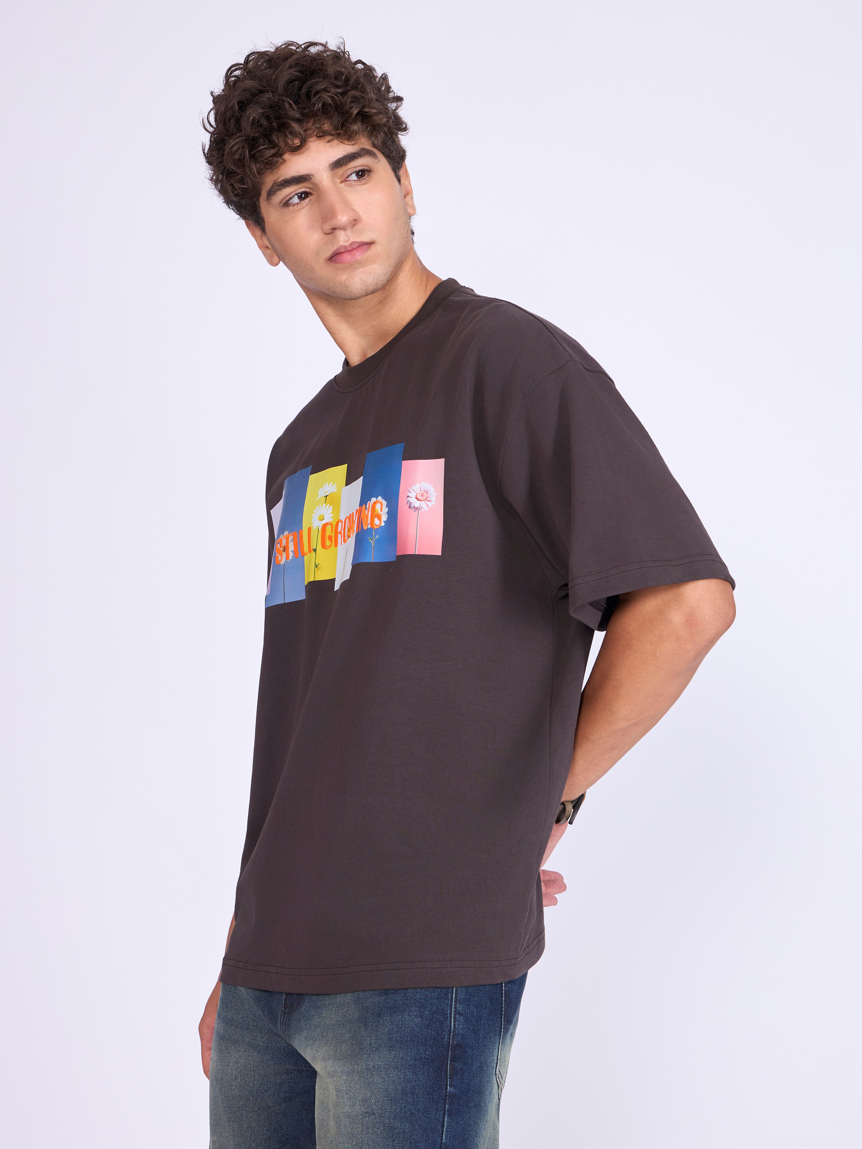 Everston - Still Growing Printed Baggy T-Shirt - Ground Coffee