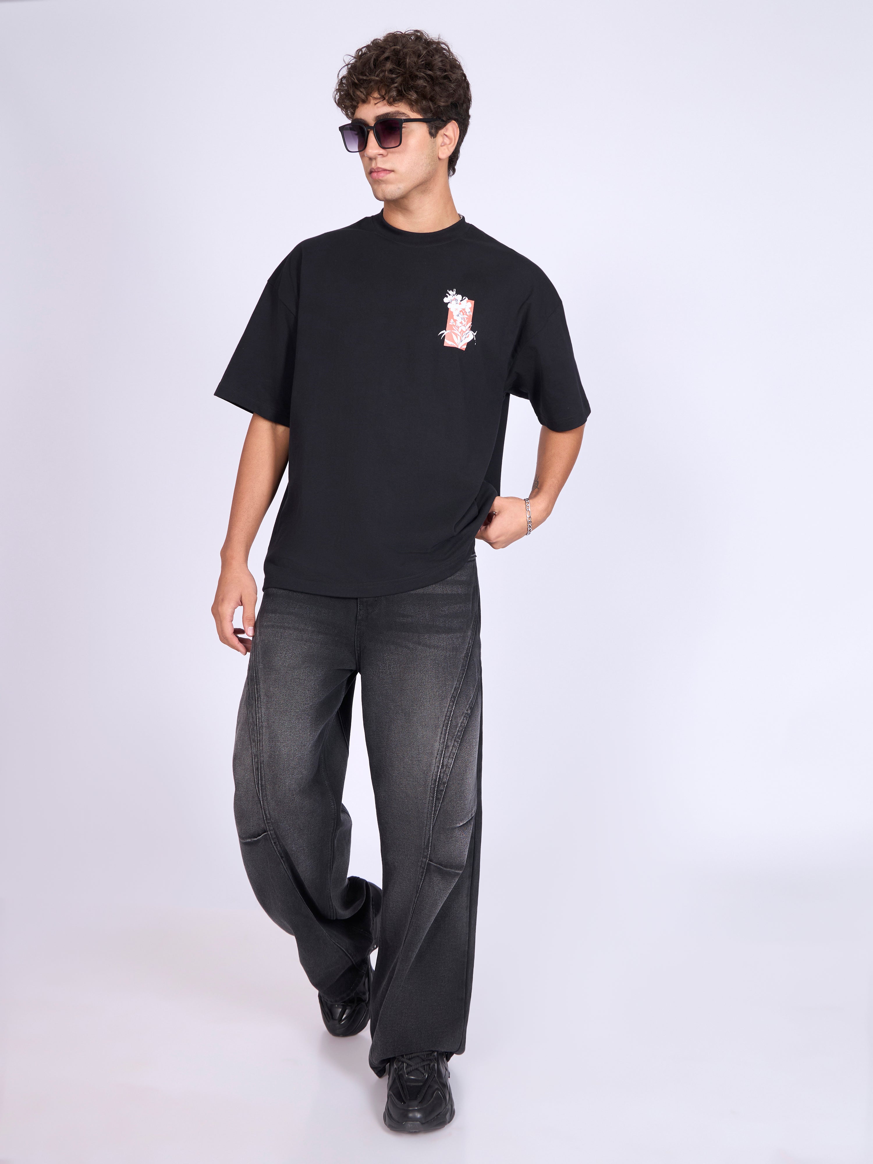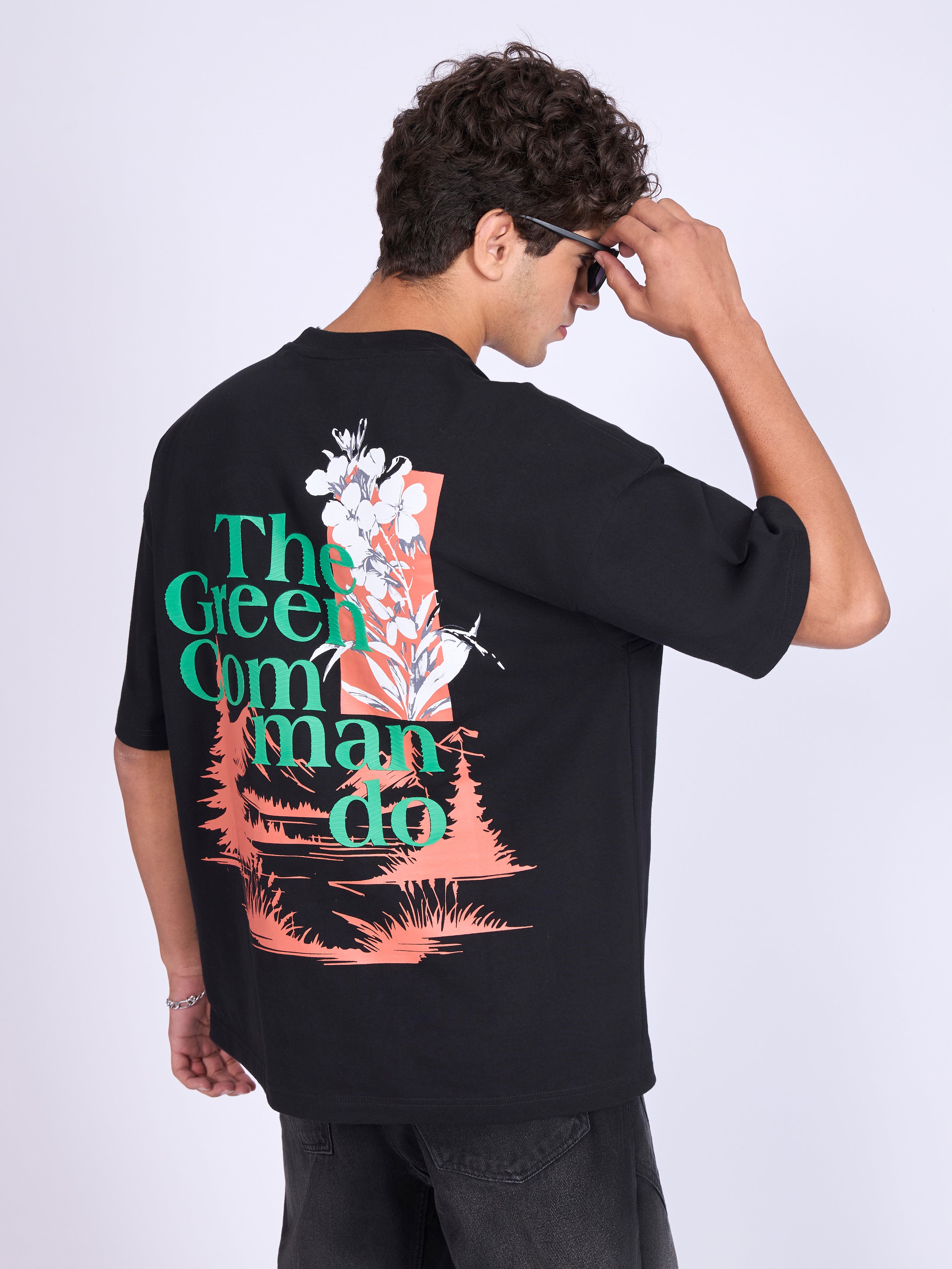 Everston - The Green Commando Printed Baggy T-Shirt - Black