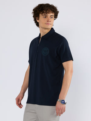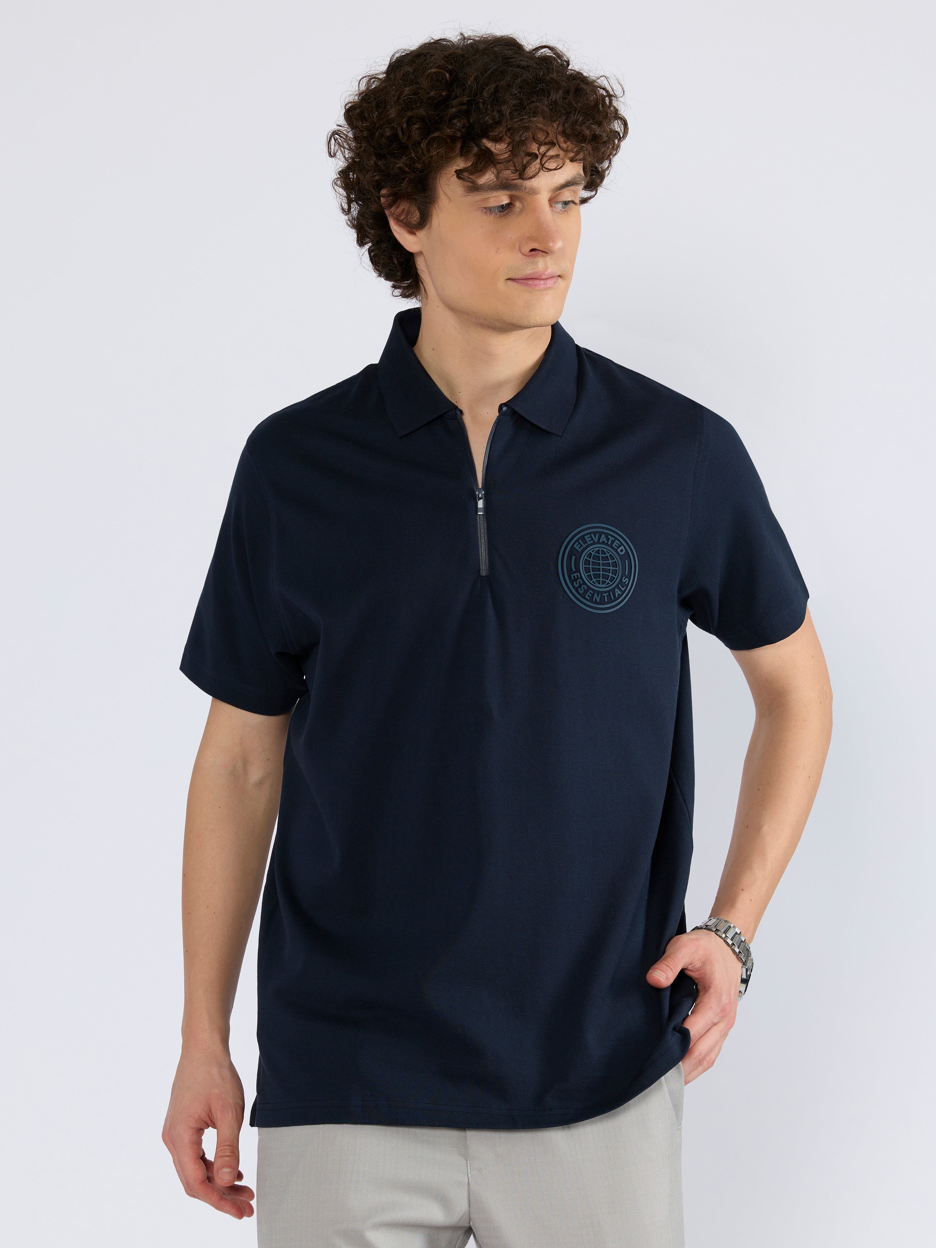 Yelitude - Solid Zipper Polo T-shirt - Navy Blue
